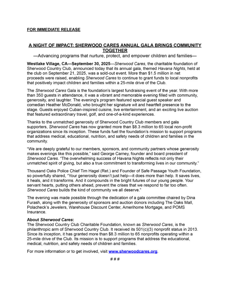 Sherwood Cares Grants Nearly $600,000 to Local Nonprofits in April and Raises $400,000 at Annual Golf Classic